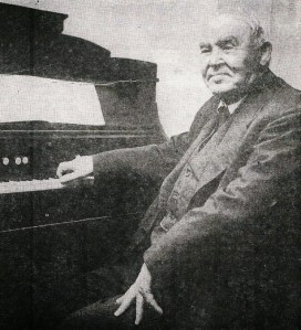 Friðrik Bjarnason við harmoníum orgel sitt