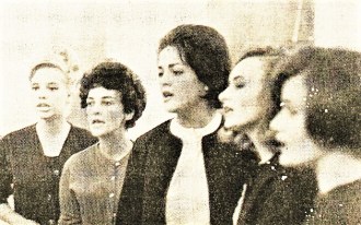 Bertha Biering, Sigrún, Elly Vilhjálms, Helena Eyjólfsdóttir og Anna Vilhjálms við upptökur 1964