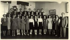 Skólakór Héraðsskólans á Reykjum ásamt Matthíasi Jónssyni stjórnanda