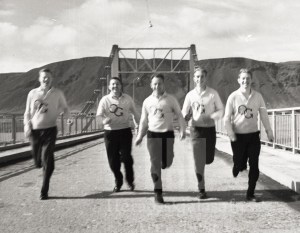 Hljómsveit Óskars á hlaupum yfir Ölfusárbrú